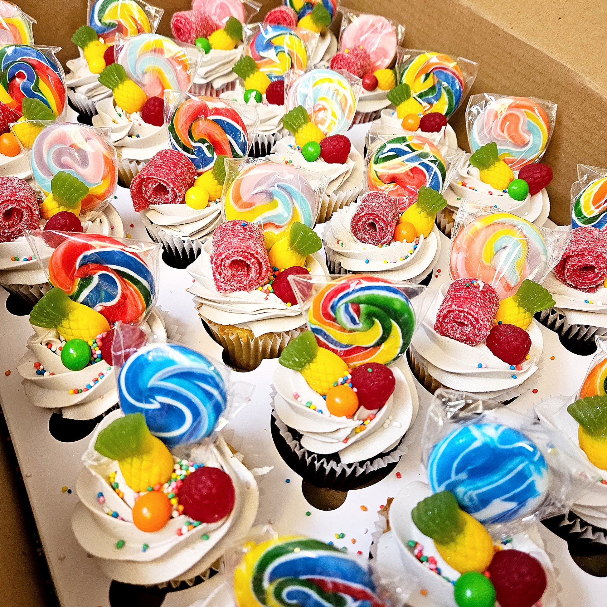 Brighten any celebration with our delightful Lolly Cupcakes! Each fluffy cupcake is topped with creamy frosting and crowned with colourful lollies, bringing a burst of sweetness and fun to every bite. Perfect for kids' parties, special occasions, or anyone with a sweet tooth who loves a playful treat.